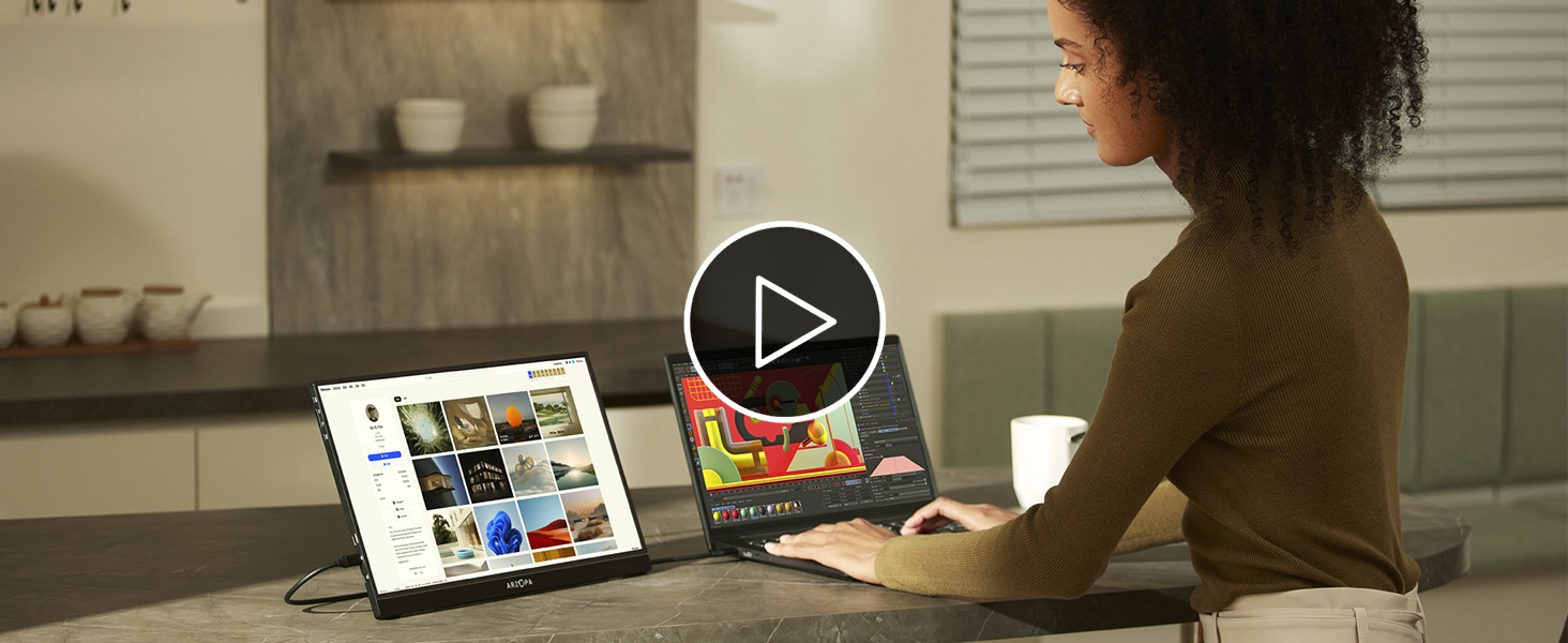 Ready for collaboration, anywhere. Seamlessly work together with a 17.3″ portable monitor designed for easy sharing and presenting.