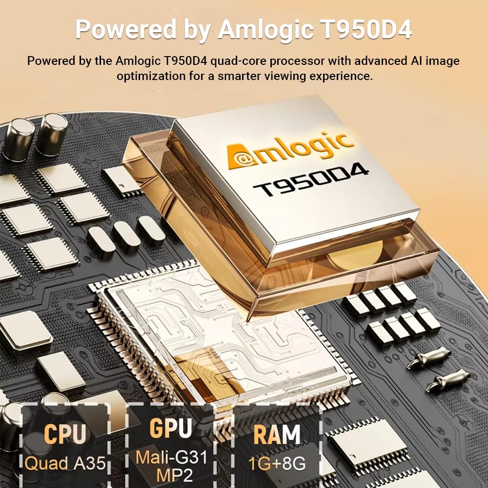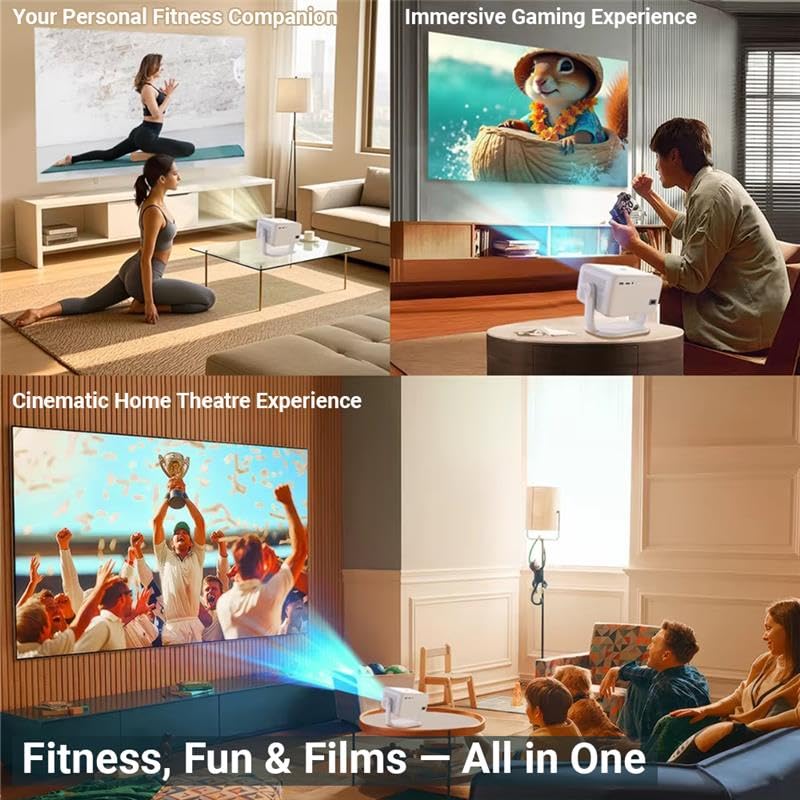 Special Features : Auto Focus, Auto Keystone (For Perfect Screen alignment) | WiFi (For Screen Mirroring, Miracast, Airplay) | Portable | Android 12 | 1GB RAM, 8GB Internal Memory | Preinstalled Netflix, Prime, Hotstar, Youtube, etc | 100% NTSE & PAL Decoding